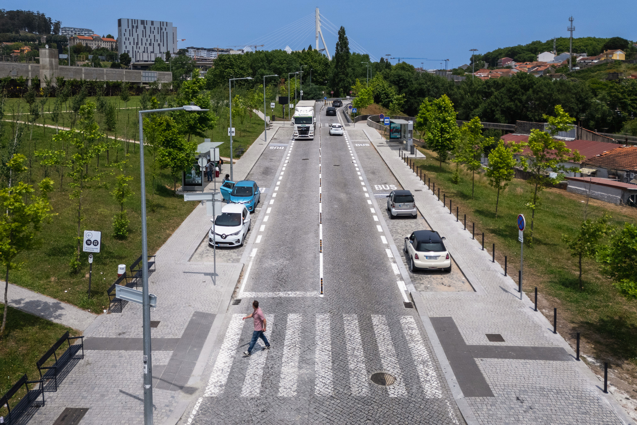 Reconfiguração de paragens de autocarros e de baías de espera de táxis e TVDE na envolvente ao Terminal Intermodal de Campanhã. Reforço da sinalização.