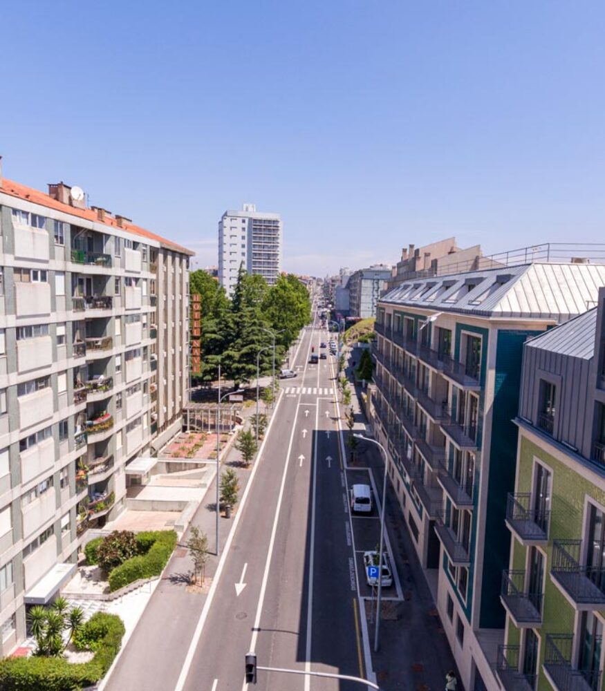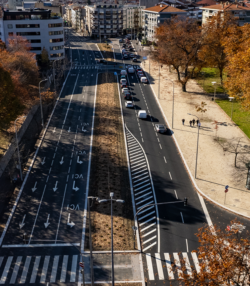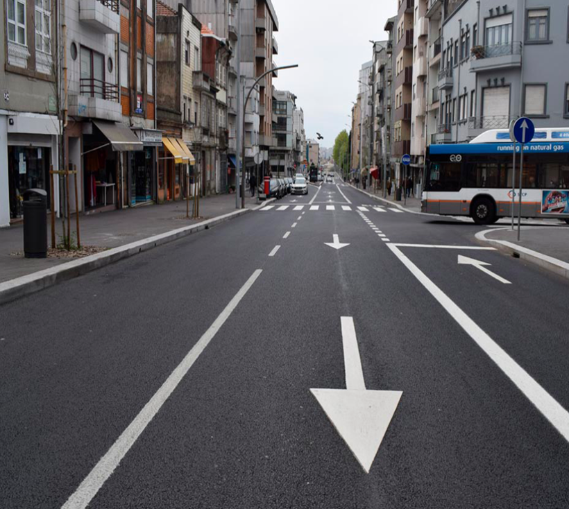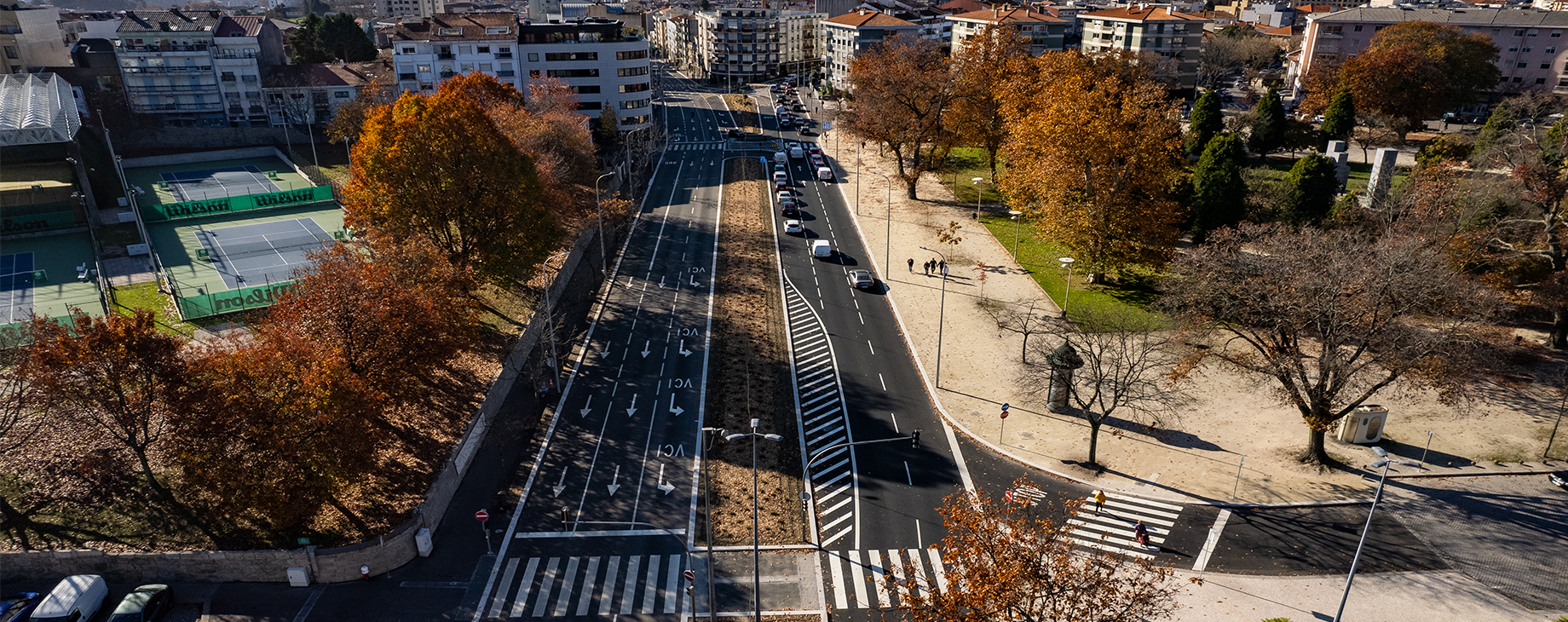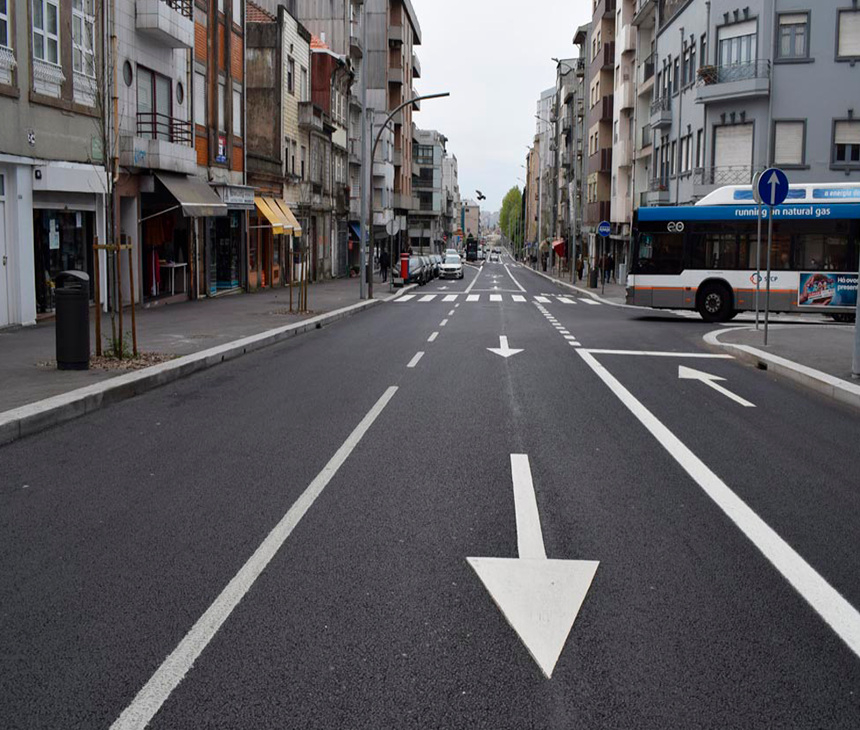 Além destas, o aumento das condições de segurança e de conforto ambiental de todos os utilizadores está garantido pelo estreitamento das vias de circulação, com a consequente redução da velocidade, da poluição e do ruído.