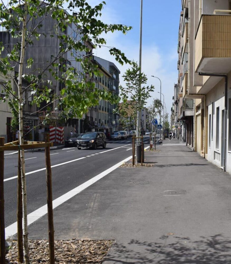 A arborização, localizada nos passeios e, maioritariamente, de ambos os lados da faixa de rodagem, foi pensada com o objetivo central da melhoria das condições bioclimáticas em meio urbano de relativa compacidade, considerando designadamente aspetos futuros do conforto no espaço público decorrentes das alterações climáticas. As espécies escolhidas são de folha caduca, beneficiando as condições nas épocas frias.