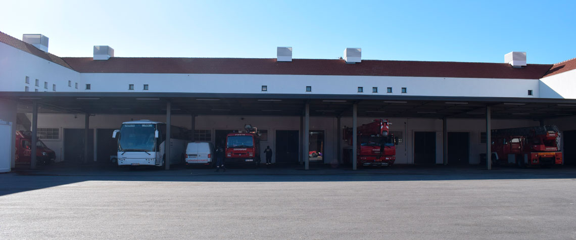 A intervenção visou a construção de uma zona coberta integrada com o novo edifício, para aparcamento de viaturas. Foi dada preponderância aos elementos metálicos da estrutura do referido coberto, à sua ligação ao edificado, bem como ao tratamento da iluminação exterior e à recolha de águas pluviais, privilegiando os acessos ao piso térreo do edifício, zona de oficinas e dos mergulhadores.